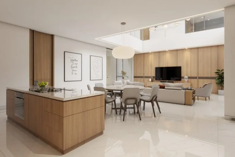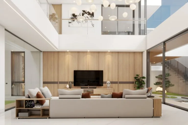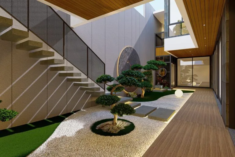 Bagian interior dari Kragilan House menampilkan nuansa hangat, dengan dominasi material kayu, pencahayaan alami, serta furnitur modern berwarna netral. Taman tropis yang terintegrasi dengan ruang dalam menciptakan kesegaran alami sekaligus menambah nilai estetika. Kragilan House menjadi bukti bagaimana arsitek mampu melahirkan karya hunian tropis yang elegan, sehat, dan layak menjadi inspirasi bagi Anda yang mencari arsitek rumah mewah di Yogyakarta.