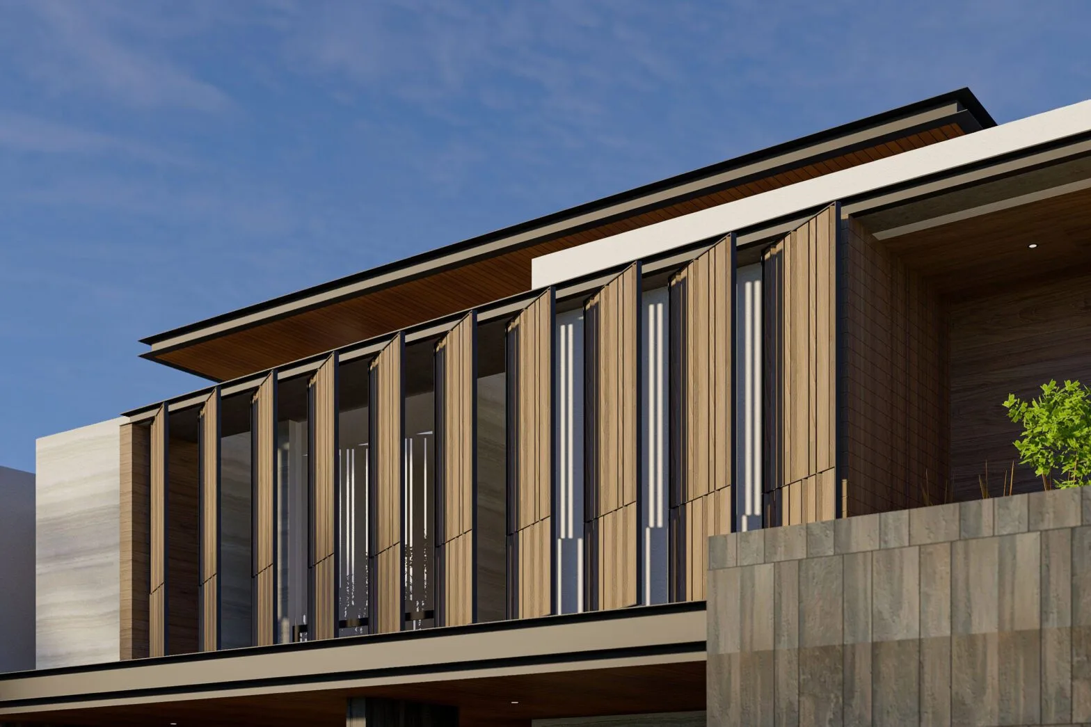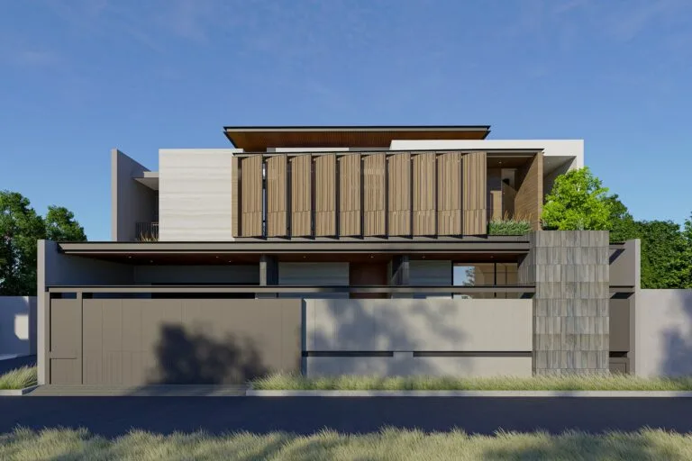 Kragilan House adalah salah satu karya desain dari ConArch Studio, konsultan arsitek dan desain interior terbaik di Jogja dan sekitarnya. Rumah ini berdiri di atas lahan 540 m², rumah mewah tropis ini dirancang dengan pendekatan villa tropis modern dengan sentuhan Japandi yang sesuai dengan impian owner dan iklim Yogyakarta. Dengan orientasi bangunan menghadap barat, tantangan panas matahari sore dijawab melalui penerapan shading, bukaan lebar, serta tata ruang yang efisien, menjadikannya contoh ideal hasil karya jasa arsitek rumah untuk kawasan perumahan elit Jogja.